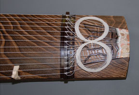 箏は桐の木から作られています。紋様が美しく、いかにも日本の伝統楽器の姿をしています。「琴線にふれる」という言葉のとおり独特の優しい音色をしています。演奏サンプル「